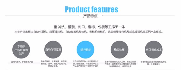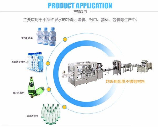 該礦泉水生產(chǎn)線用于流動性好的飲料類液體灌裝生產(chǎn)線的流水作業(yè),適用于各種異型瓶。